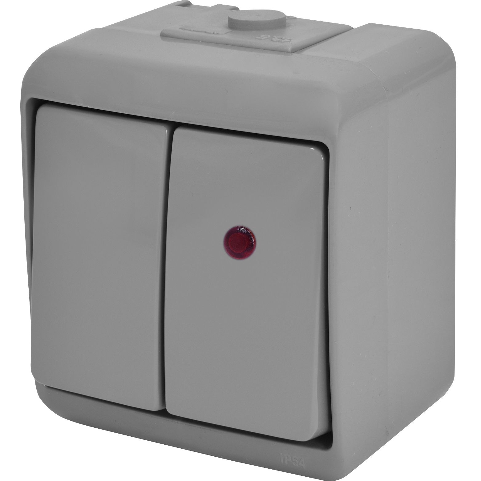 Вимикач ЕТІ, 2-клавішний з підсвіткою,10А, ~250В, IP54 - (VHE-2L-SR)