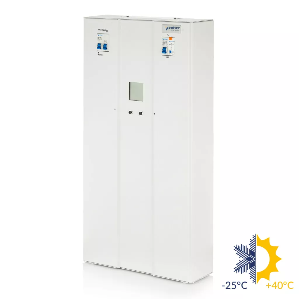 Volter EtalonS-4 (морозостійкий) – однофазний стабілізатор напруги для квартири або будинку максимальною потужністю 3.5 кВт, відноситься до серії Volter EtalonS, призначений для забезпечення стабілізованою напругою всіх видів електроспоживачів при живленні від мережі з незадовільною якістю напруги, може використовуватися в неопалюваних приміщеннях або на вулиці в захищеному від опадів місці.