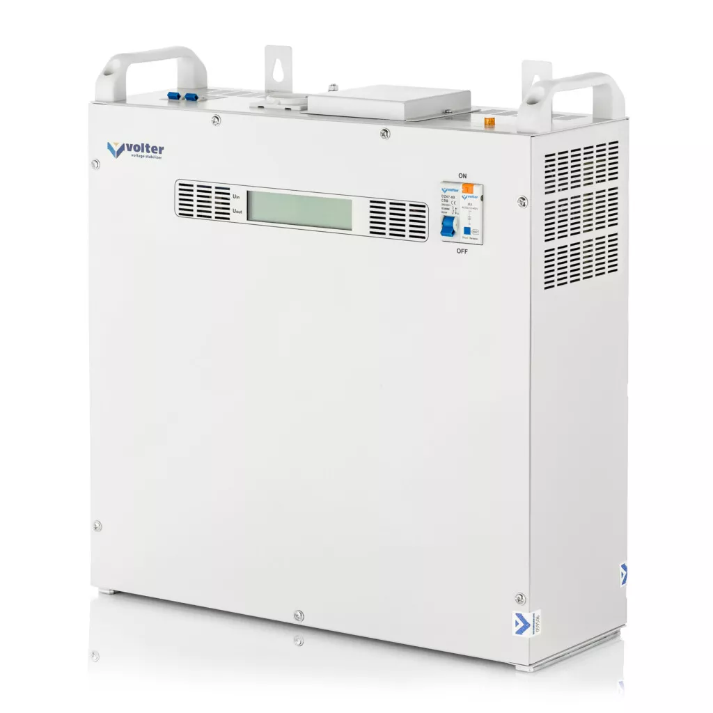 Volter 11 пттм – однофазний стабілізатор напруги для квартири або будинку максимальною потужністю 11 кВт, відноситься до серії Volter ПТТМ, призначений для забезпечення стабілізованою напругою всіх видів електроспоживачів при живленні від мережі з незадовільною якістю напруги. Це пристрій подвійного перетворення без накопичення енергії.
