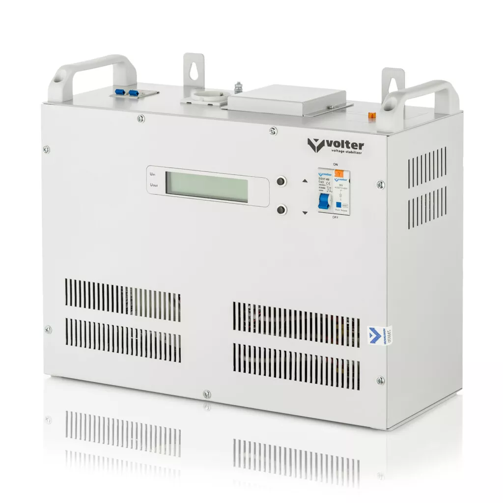 Модель Volter ™ -14 с. Стабілізатори даної моделі встановлюються стаціонарно і призначені для безперервної роботи. Монтаж відбувається в розрив фази після електричного лічильника – це обов’язкова умова для побутового використання.
