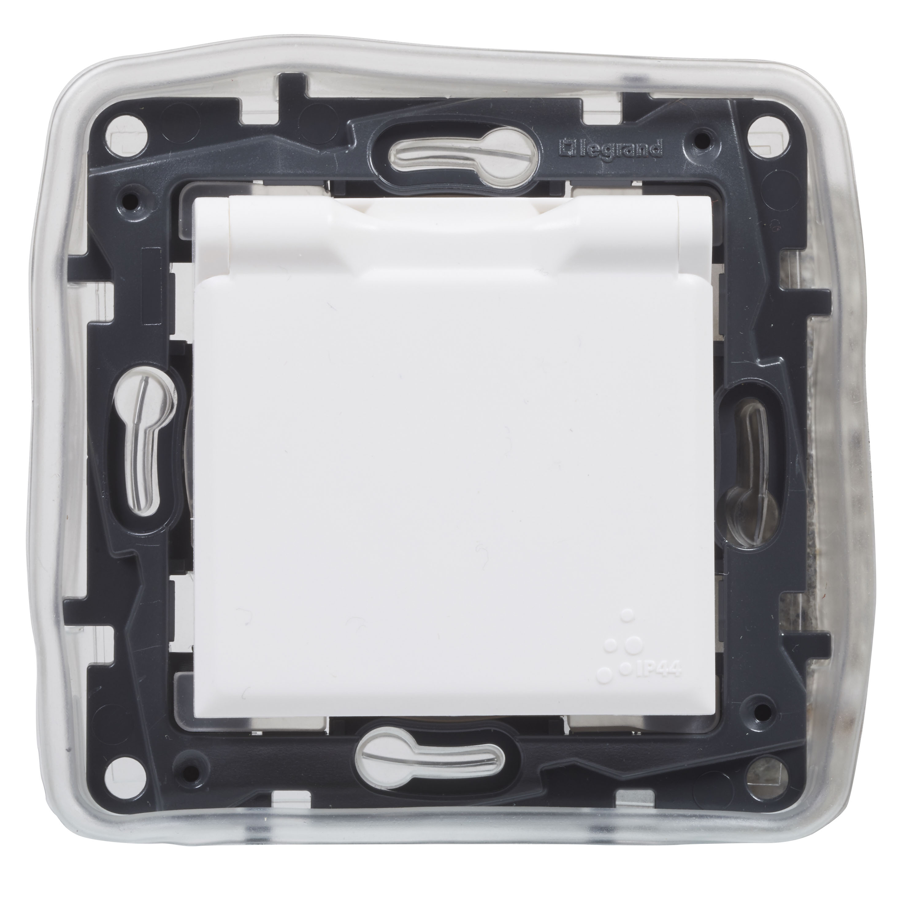NILOE STEP Розетка силова з кришкою 2К+З IP44 16А, 250 В автоматичні клеми, колір Білий