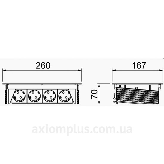 Висувний розетковий блок OBO Bettermann (6116804) з кришкою 4 розетки 2р+E 250V AC кабель 3м з нержавіючої сталі