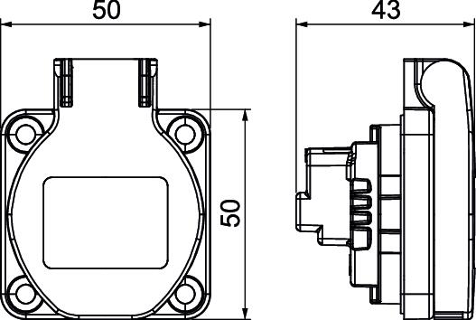 Розетка захисного контакту поверхневого монтажу 0° з відкидною кришкою, зі вставними клемами, 2-полюсна, 16 A, 250 В~, із з’єднувальними клемами відповідно до IEC 60884-1. Клас захисту: IP 44