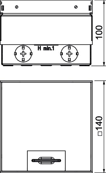 Монтажний корпус із попередньо вирізаними вхідними отворами для труб (M20/M25). Верхню частину можна пристосувати до верхнього краю підлоги за допомогою 4 вирівнювальних опор. Мінімальна монтажна глибина 100 мм, діапазон вирівнювання + 35 мм.