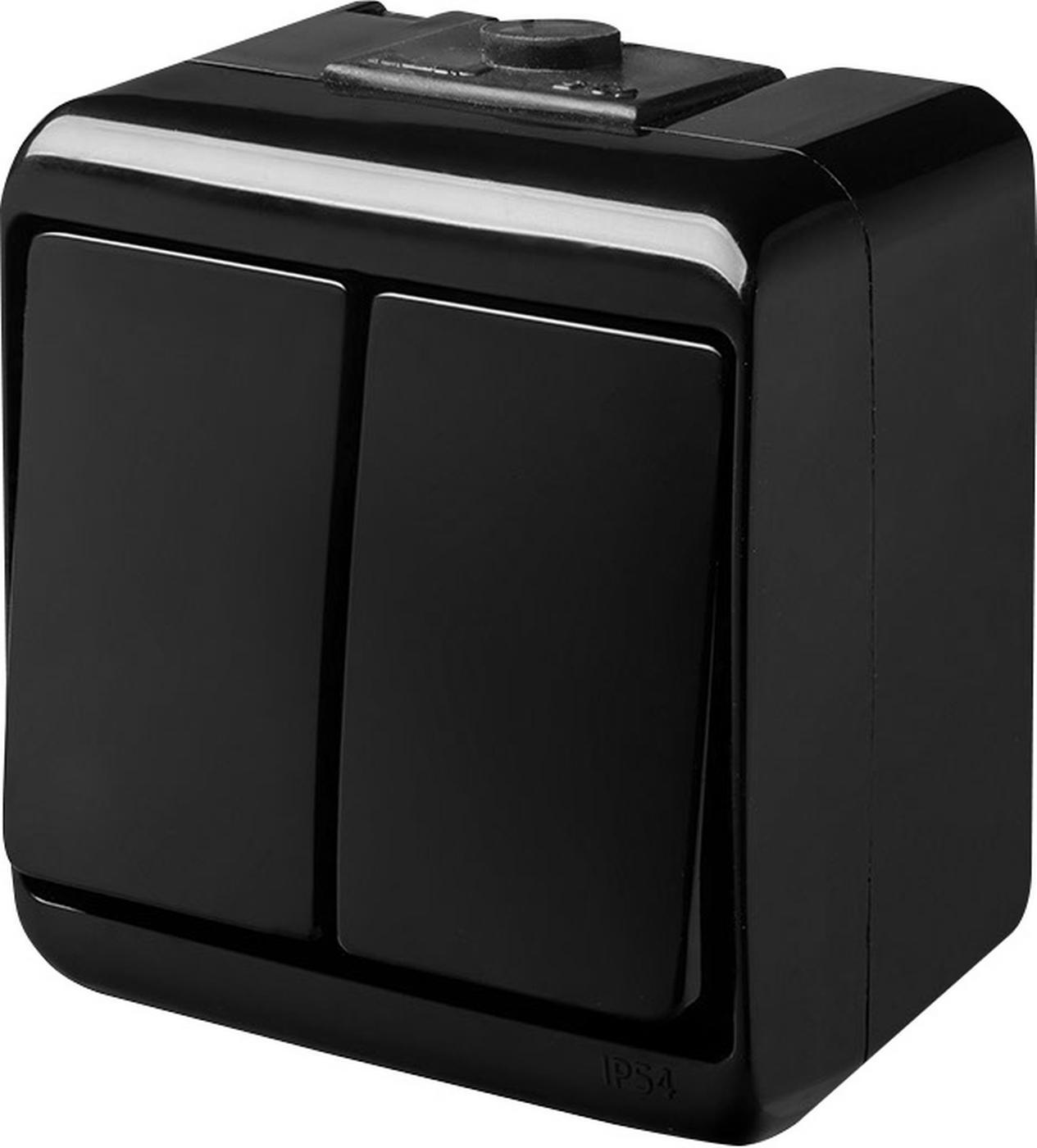 Вимикач 2-клавішний VHE-2-BL (чорний, IP54)