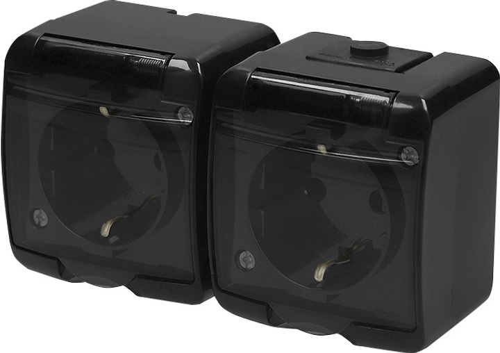 Розетка 2-на з з/к Schuko RHE-2sd-BL (чорн./прозора кришка, IP54)