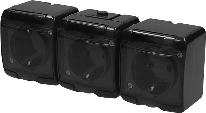 Розетка 3-на з з/к Schuko RHE-3sd-BL (чорн./прозора кришка, IP54)