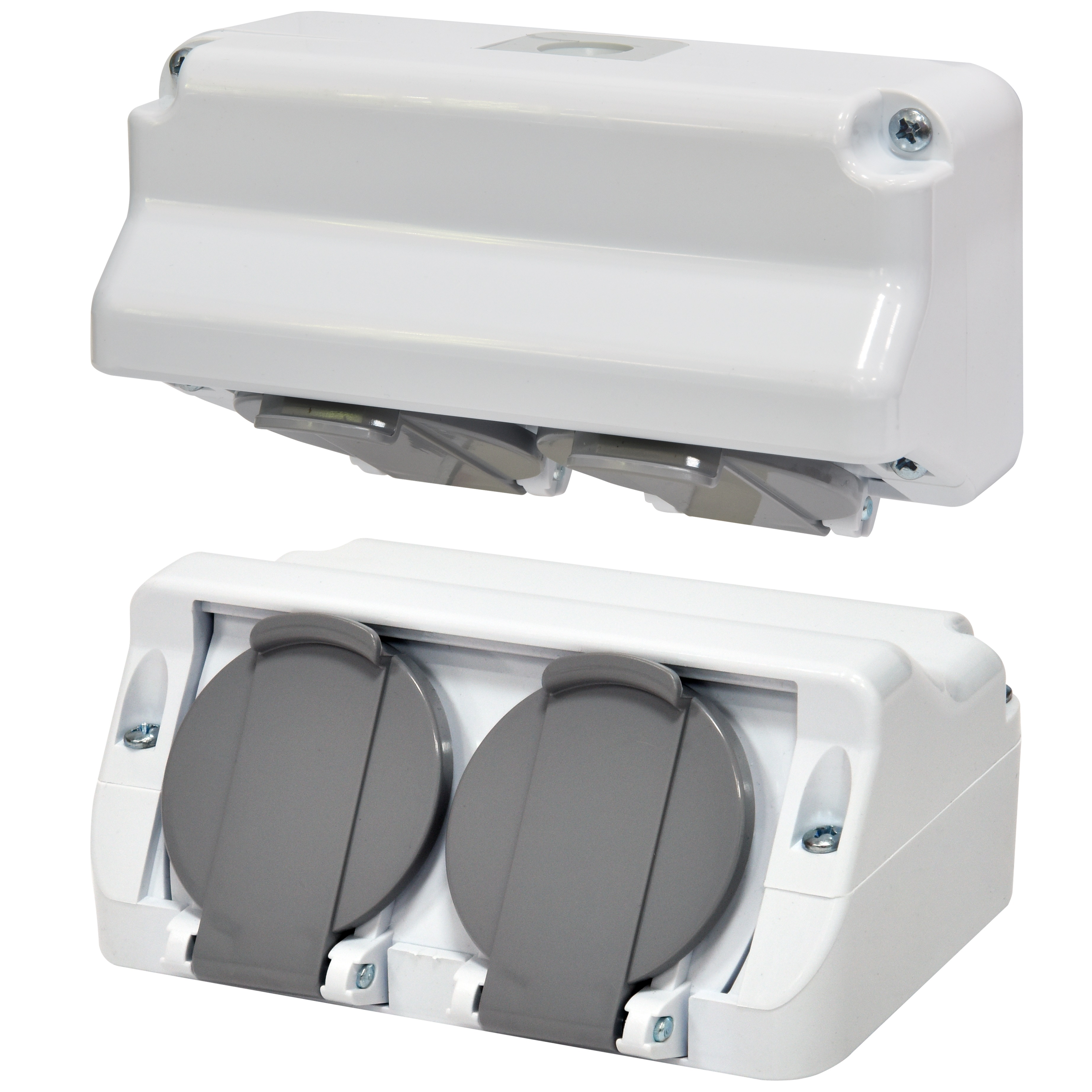 Розетка 2-на кутова PRE-2 (Schuko, IP44, 16A, 250V, полікарбонат)