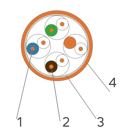 Застосування:PBX, V.11, X.21, ISDN, Ethernet (10Base-T), ATM-25/52/155 Mbit/s, 100VG-AnyLAN, Fast Ethernet (100BASE-TX), Token Ring 16/100 Mbit/s , Firewire 100 Mbit/s, PoE (IEEE 802.3af), PoE+ (IEEE 802.3at), PoE++ (IEEE 802.3bt), HDBaseT, 1000BASE-T, 2.5GBASE-T, 5GBASE-T (до 55 метрів).Даний кабель має міцну вогнетривку LSFROH оболонку.