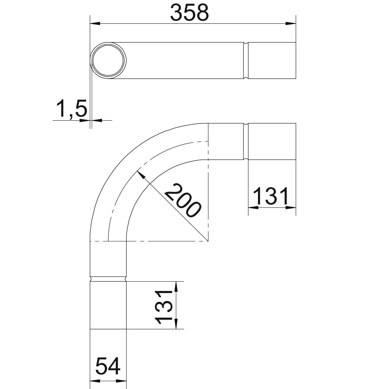 Коліно 90° з формованими рукавами, для електромонтажних труб згідно з EN 61386-1. З внутрішньою стінкою без задирок.