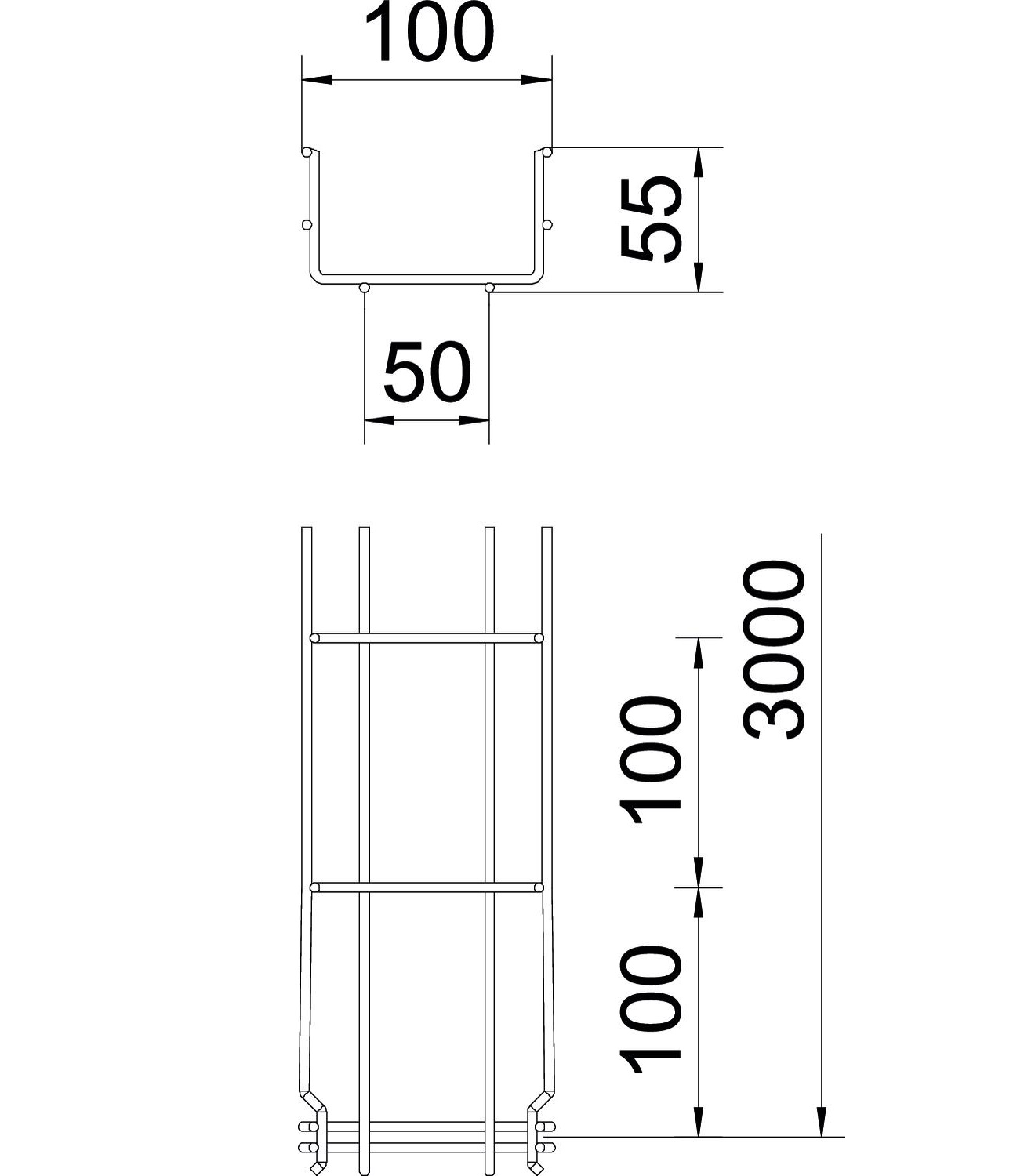 Лоток дротяний GRM, 55х100х3050, G (2,5-10 мкм)