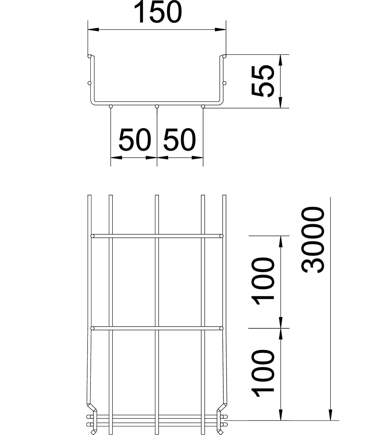 Лоток дротяний GRM, 55х150х3050, G (2,5-10 мкм)
