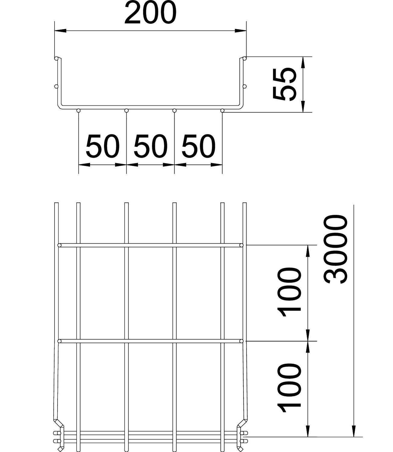 Лоток дротяний GRM, 55х200х3050, G (2,5-10 мкм)
