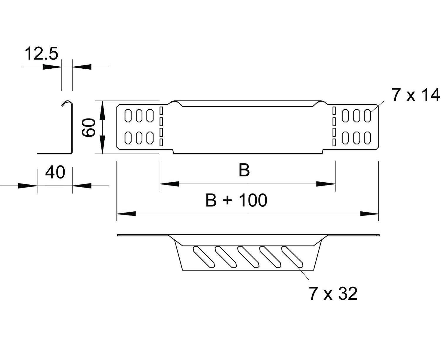 Перехідник/упорна пластина для кабельних лотків з висотою борта 60 мм.