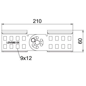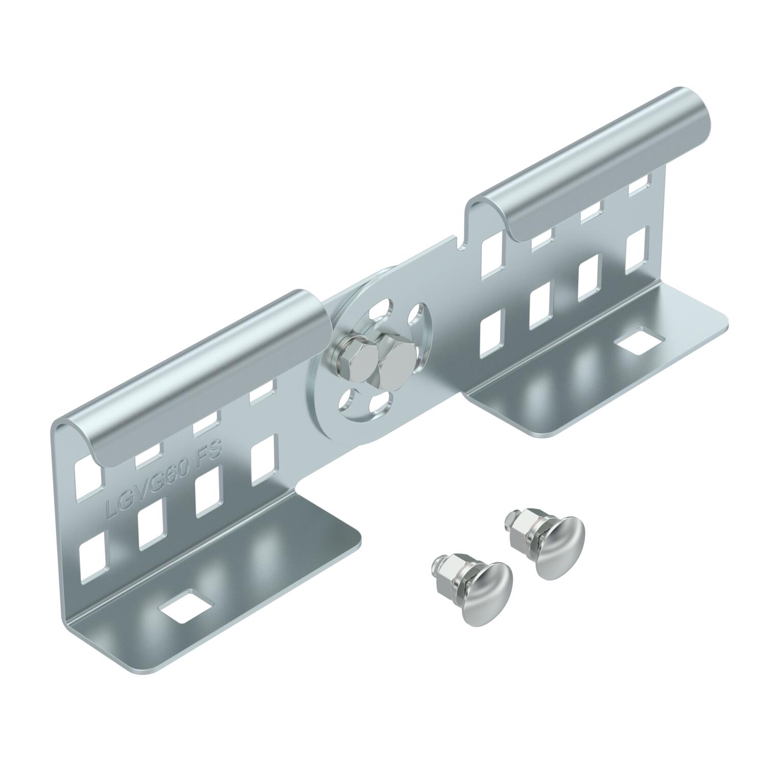 Регульований з’єднувач кабельних драбин з висотою бічної сторони 60 мм і суцільною перфорацією. Кут можна регулювати по вертикалі.