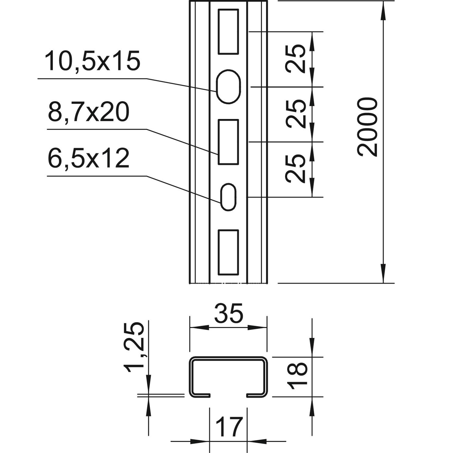 Профільна рейка 35х18х2000мм, шліц 17мм, FS (18-22 мкм)