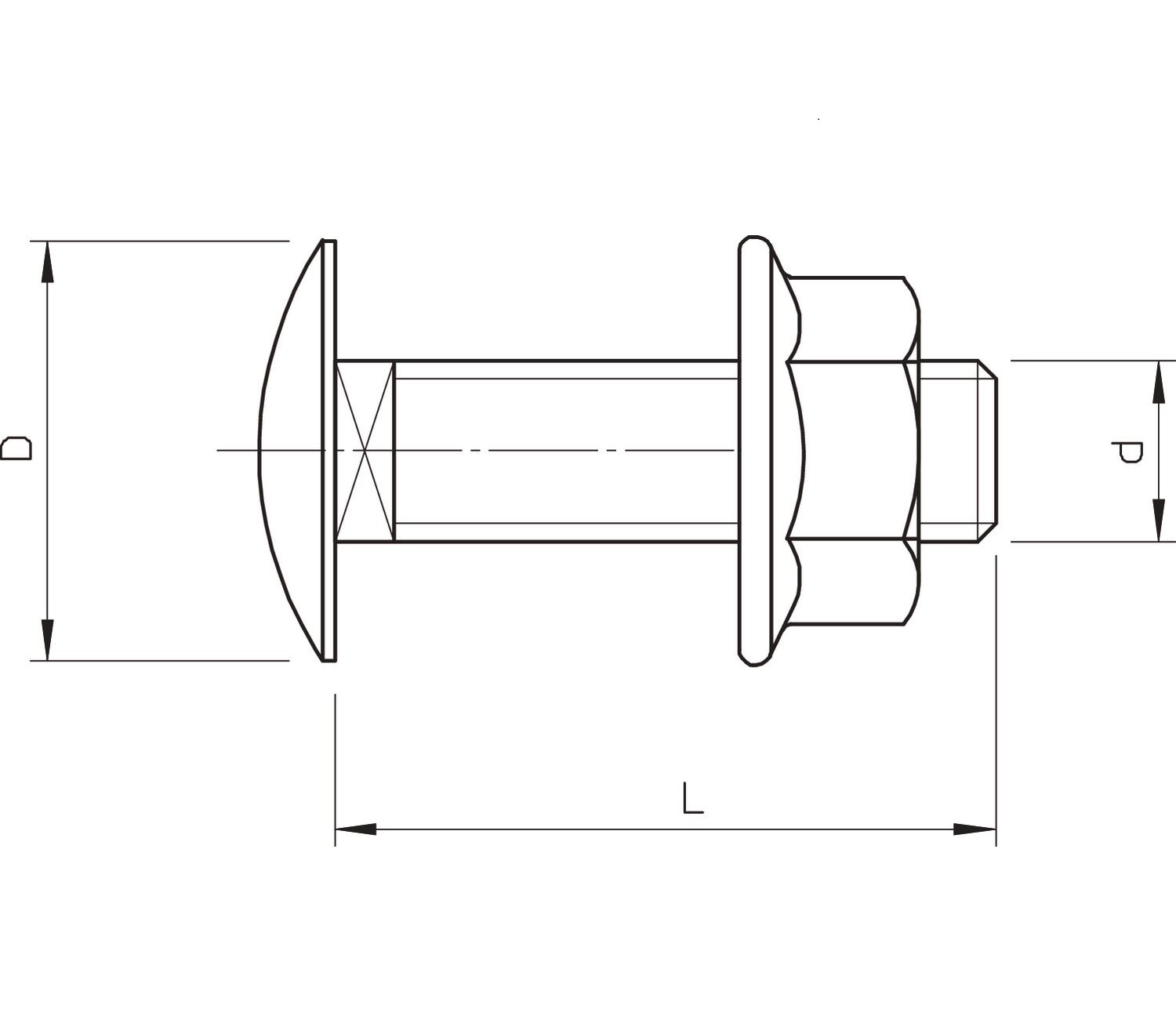 Болт з напівкруглою голівкою з комбінованою гайкою, G (2,5-10 мкм)