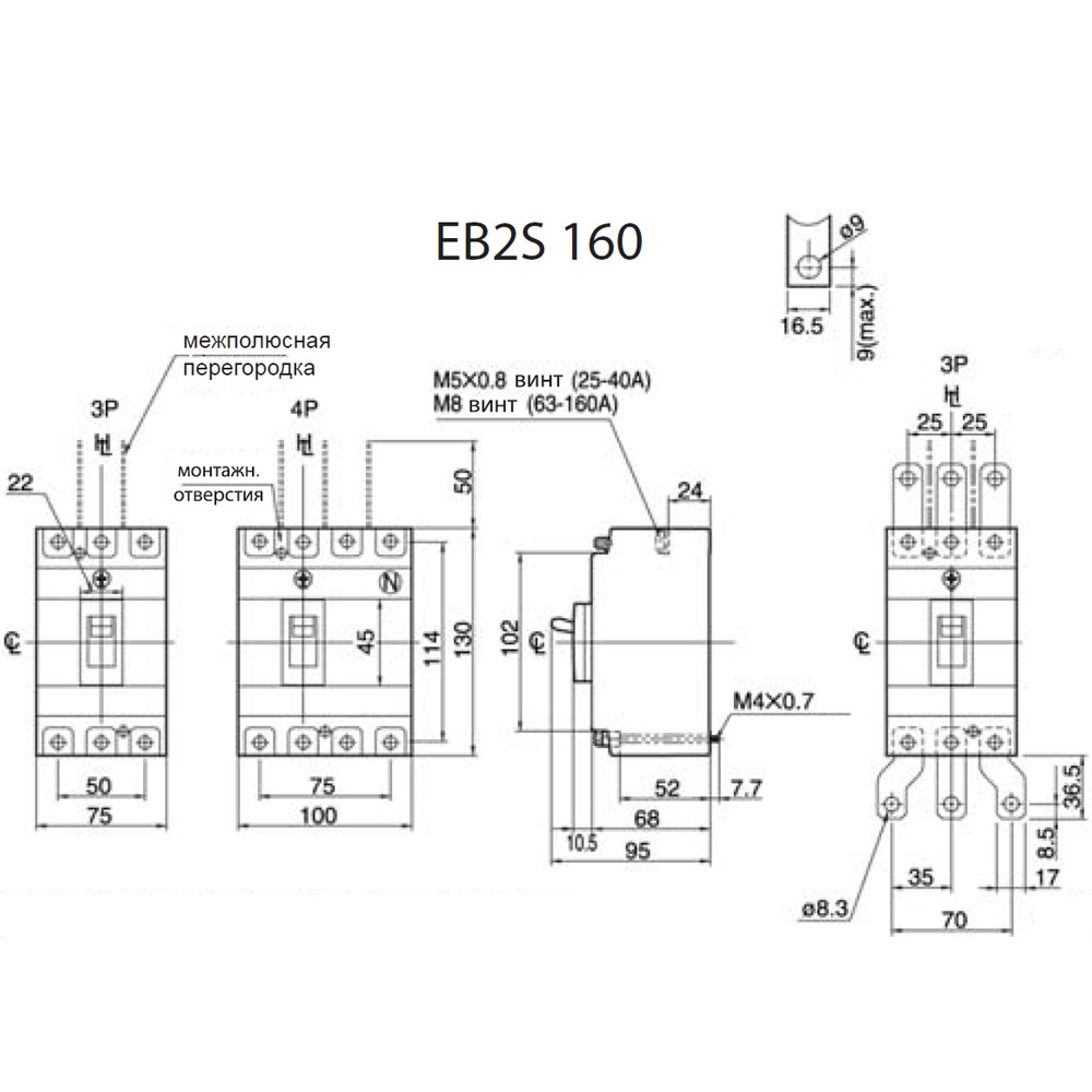Авт. вимикач EB2S 160/3SF 160A (25kA, фікс./фікс.) 3P