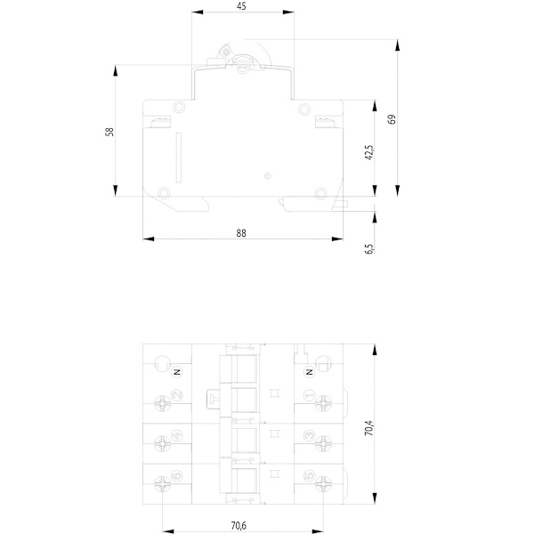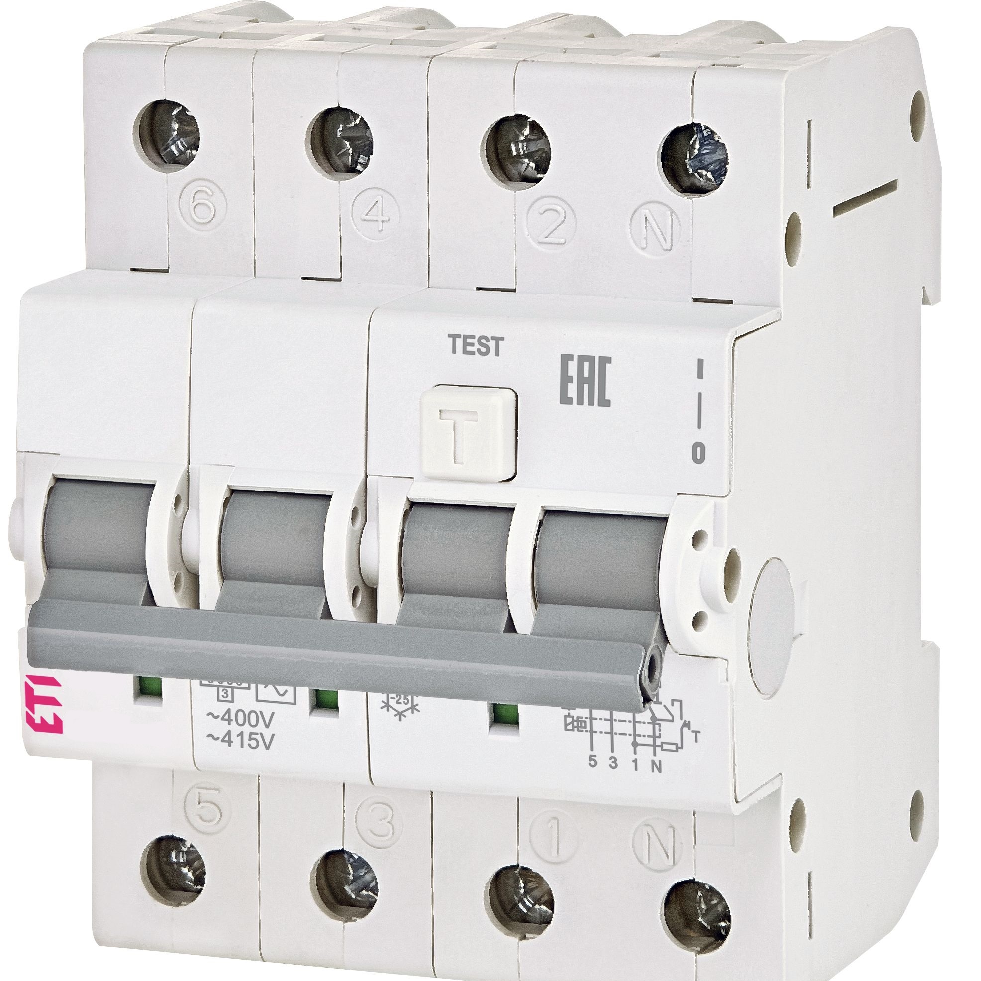 Диференційні автоматичні вимикачі чотириполюсні (3+N) тип С