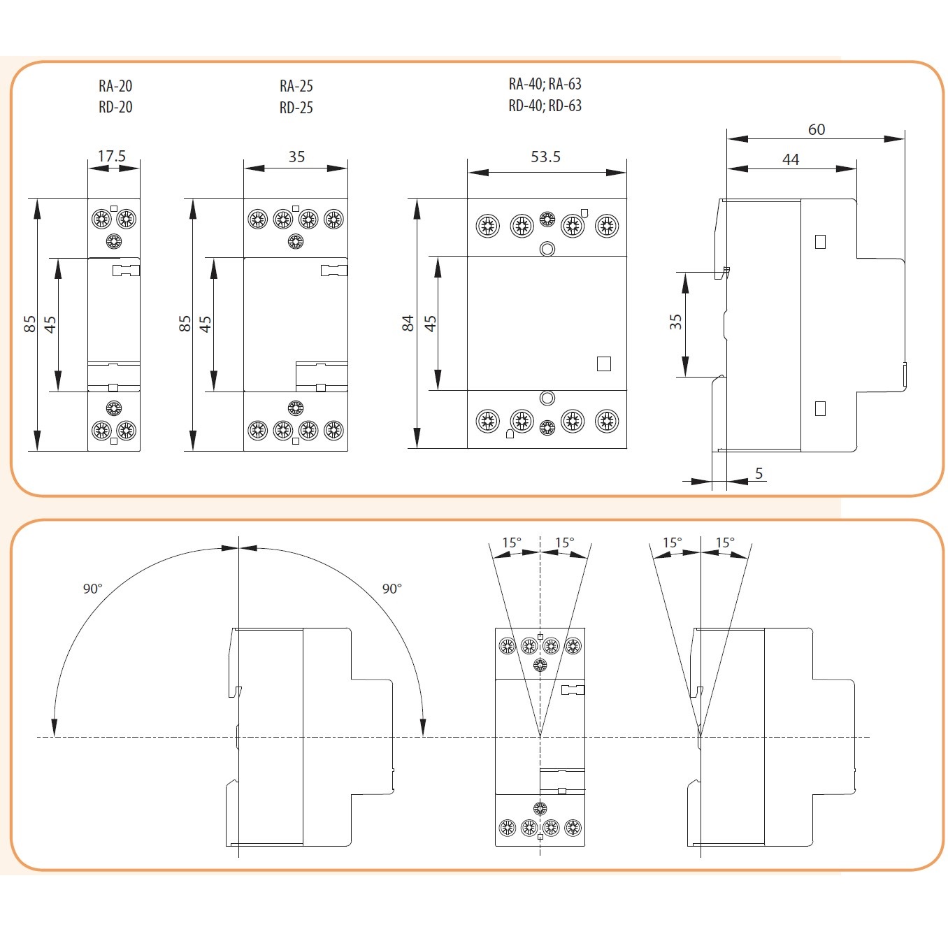 - Номінальний робочий струм Ie AC-1/AC-7a (A): 25