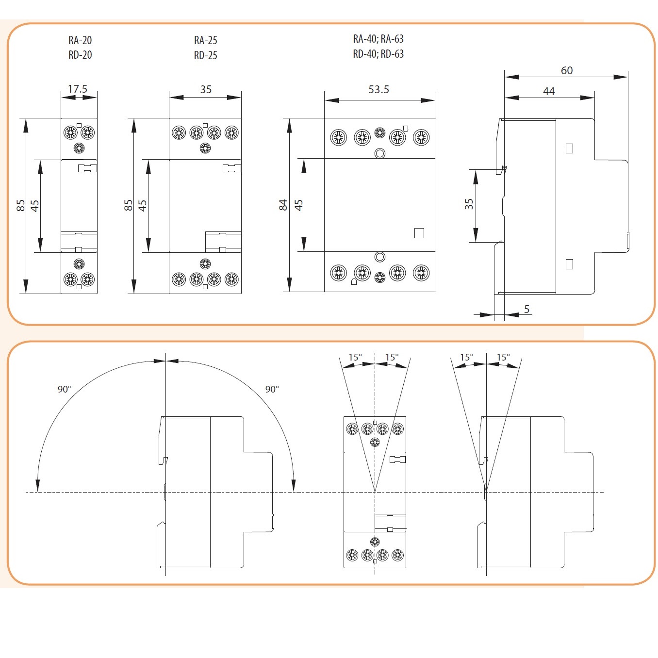 - Номінальний робочий струм Ie AC-1/AC-7a (A): 63