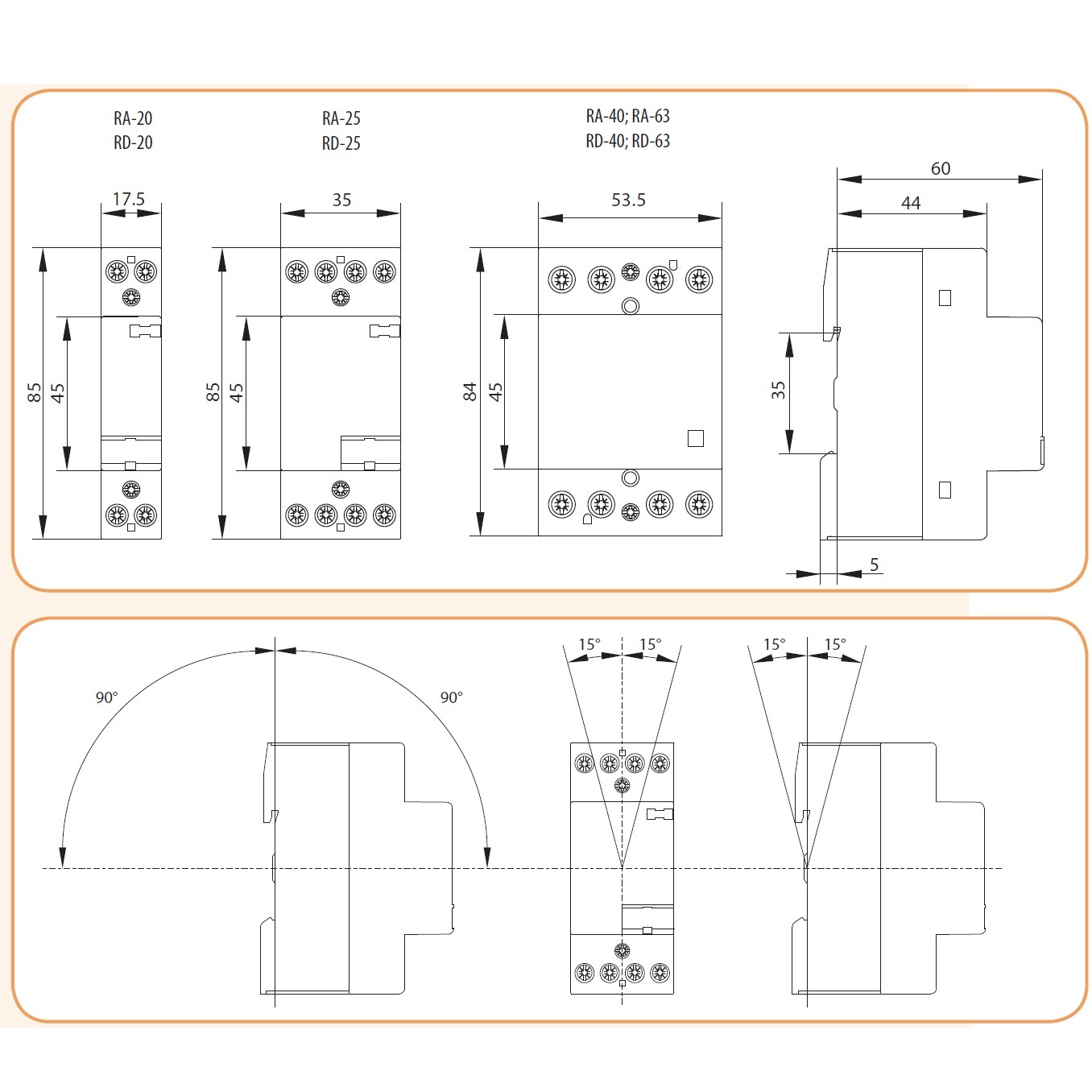 - Номінальний робочий струм Ie AC-1/AC-7a (A): 63
