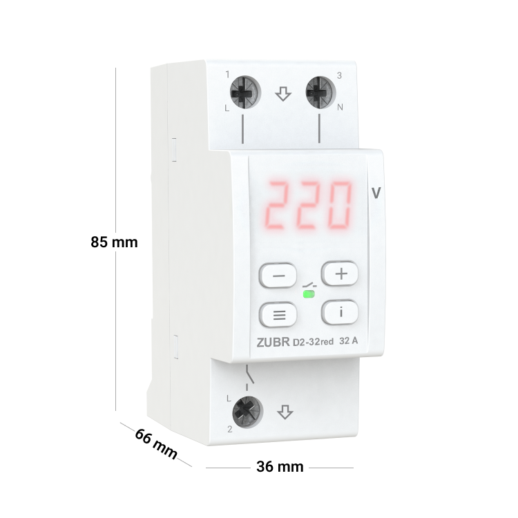 Реле напруги ZUBR D2 red захищає від критичних стрибків високої та низької напруги, а також від обриву нуля. У випадку аварійної ситуації реле напруги відключає навантаження, а при нормалізації включає назад. Широкий функціонал реле напруги дозволяє оптимізувати кількість спрацьовувань завдяки індивідуальним налаштуванням під вашу мережу.