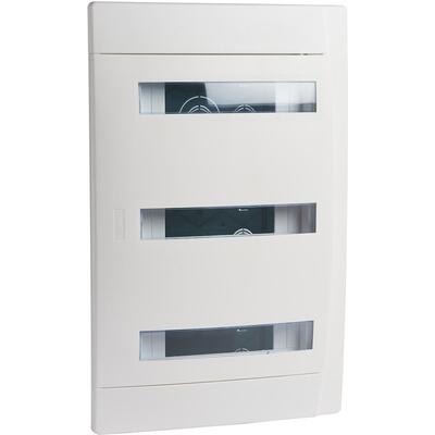 Електричний щиток на 36 модулів внутрішнього виконання призначений для монтажу в цегляні, бетонні та пустотілі стіни. Щит дозволяє розміщення до 36 модульних пристроїв на дин-рейку. Двері щита можна перенавісити на протилежний бік. Дверцята має прозоре вікно.