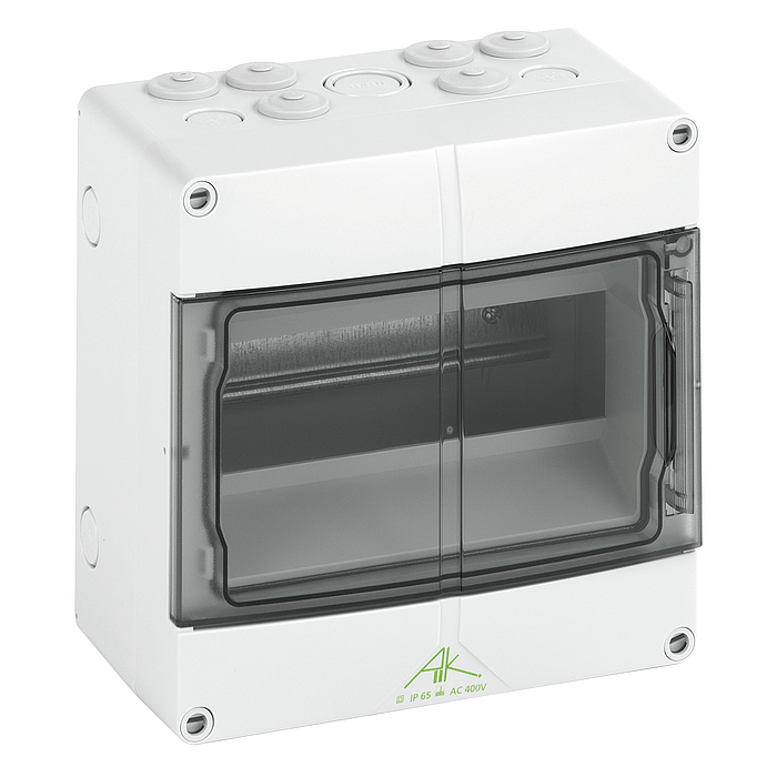 Розподільчий щит AK 09 порожній, під 9 автом. вимик., PE/N-клема: 2х7 пол.,6/16 mm2, (200х200х122), IP65