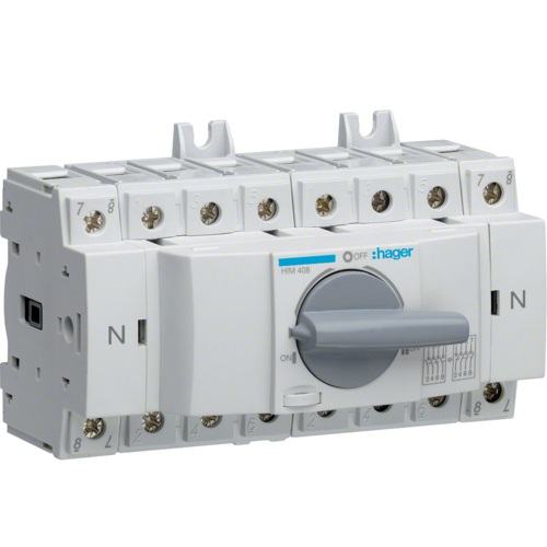Модульний 4-полюсний перемикач навантаження відповідно до DIN EN 60947-3, для перемикання під навантаженням між двома низьковольтними ланцюгами. З безпечним поділом та 3 положеннями перемикання I-0-II. Підходить для монтажу на монтажній рейці або на пластині.