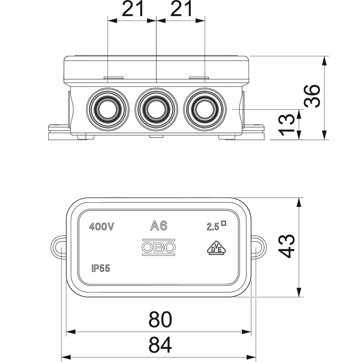 Коробка розподільча прямокутна А 6, 80х43х34, ІР55, IK07 / ПЕ