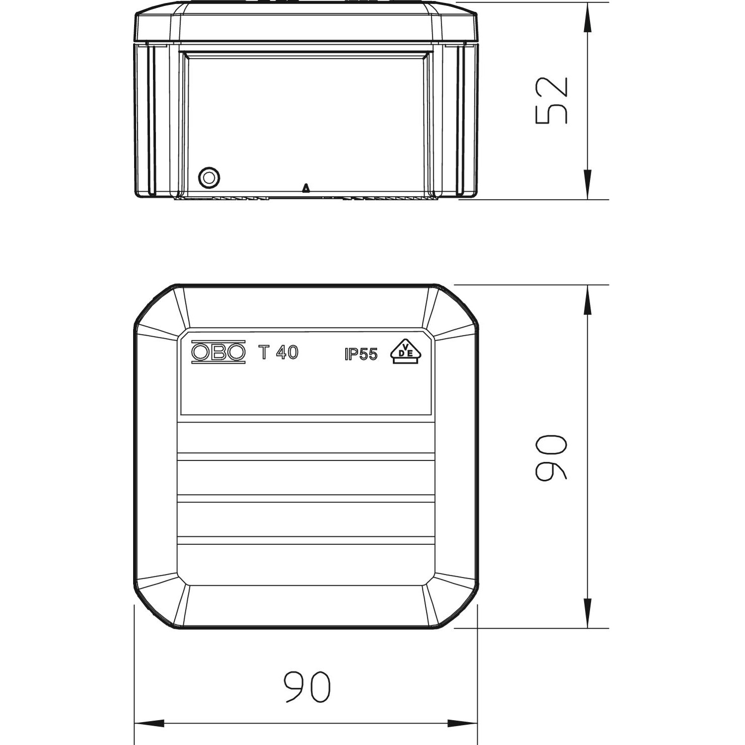 Коробка розподільча Т 40 без кабельних вводів, 90х90х52, ІР55, IK07, УФ-стійкий / ПП