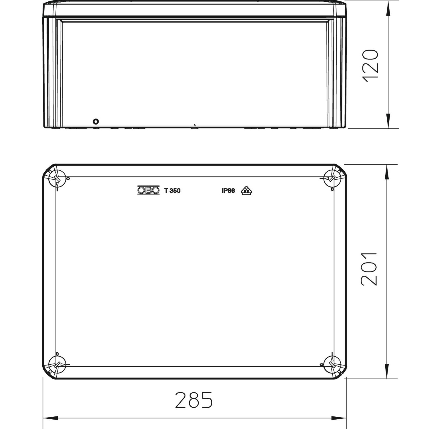 Коробка розподільча Т 350 без кабельних вводів, 285х201х120, ІР66, IK05, УФ-стійкий / ПП