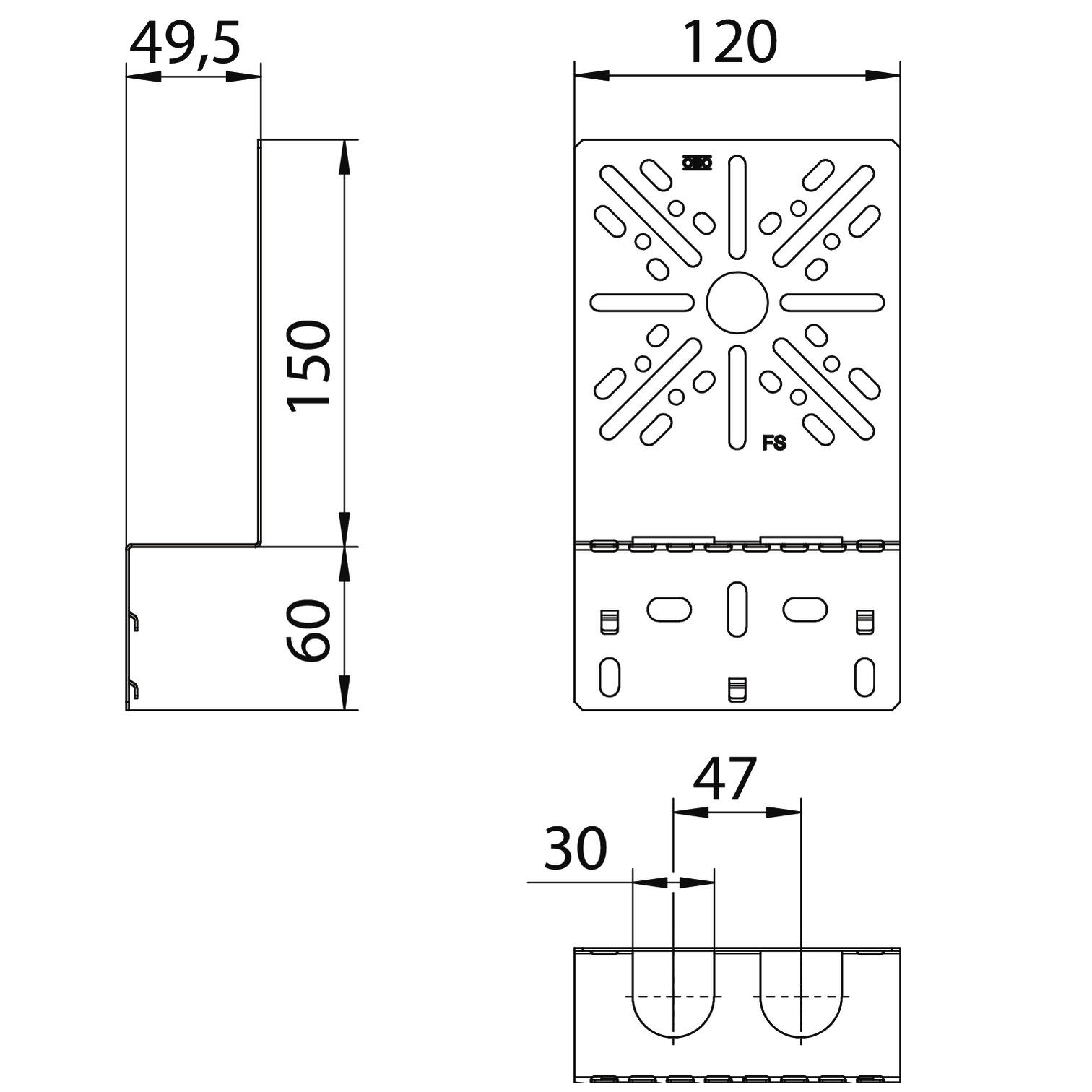Монтажна пластина у формі кута для закріплення на бічній балці кабельного лотка.