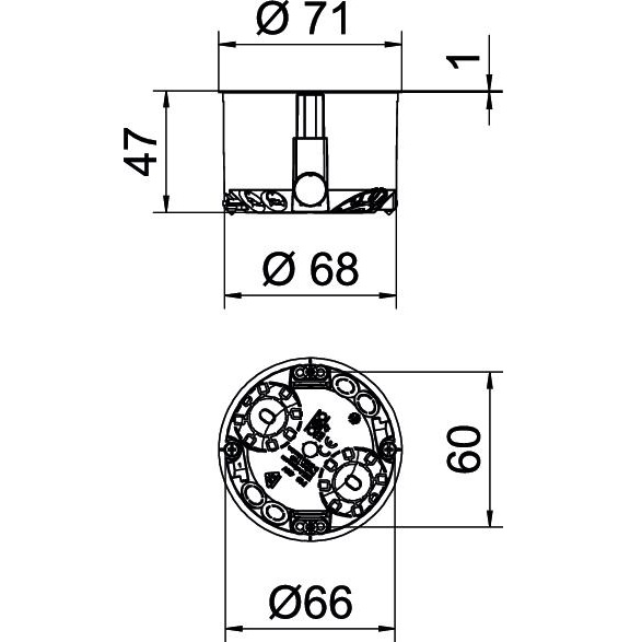 Розетка для порожнистих стін для використання з монтажною глибиною не менше ніж 47 мм та товщиною панелі 5–40 мм.