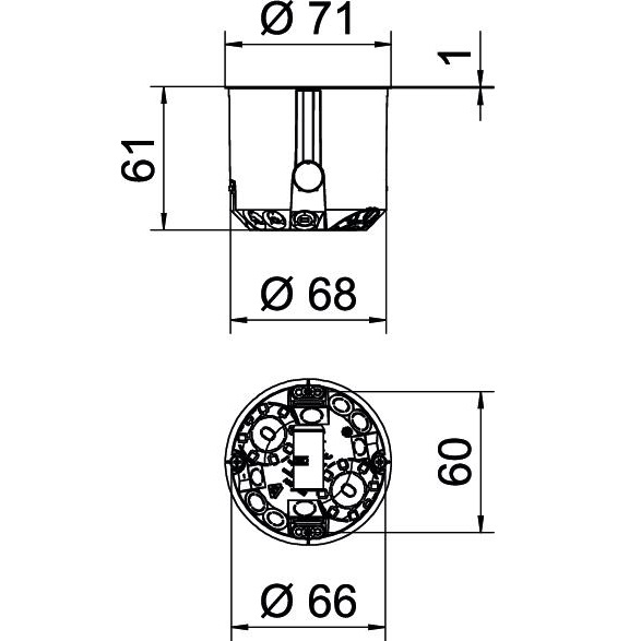 Коробка для порожнистих стін використовується при монтажній глибині не менше ніж 61 мм та товщиною панелі 5–40 мм.