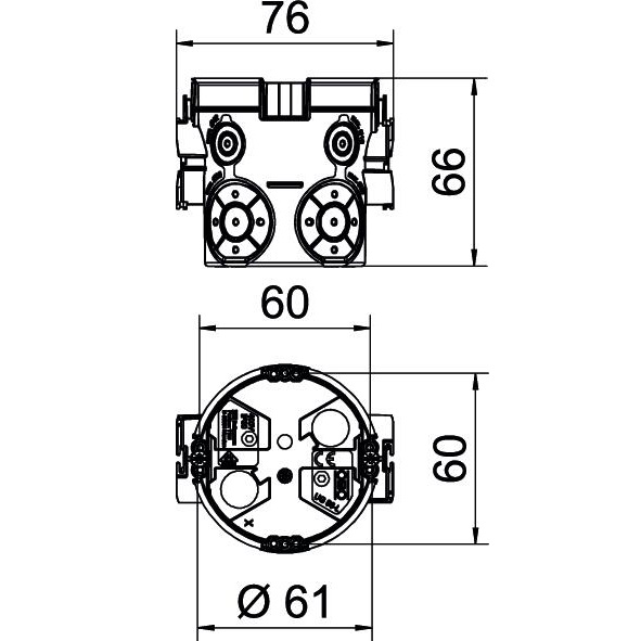 Коробка прихованного монтажу для приладів із повітронепроникними мембранними введеннями для використання в цегляній кладці з монтажною глибиною не менше ніж 66 мм.