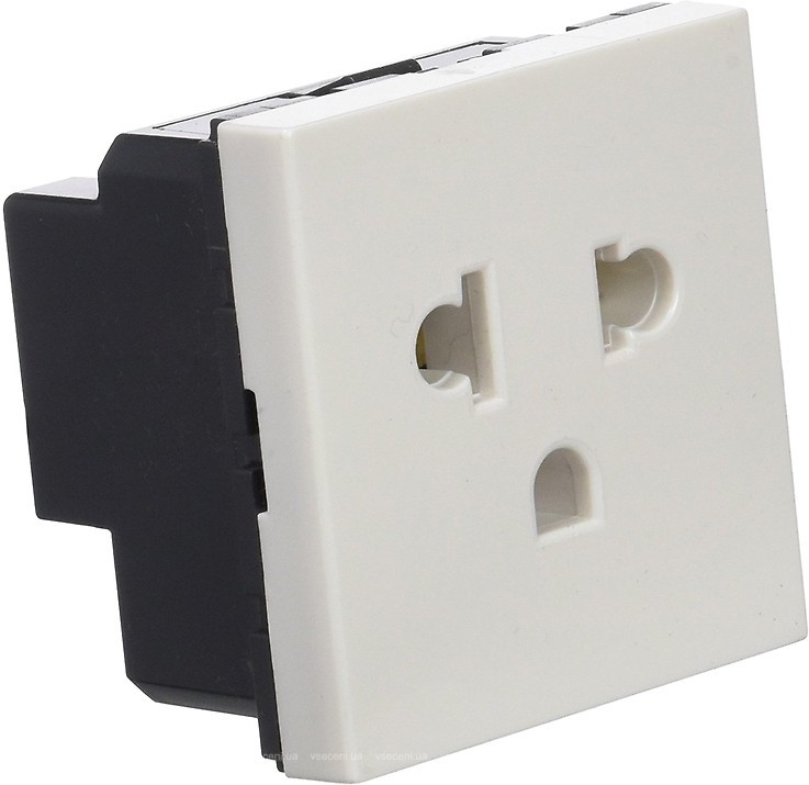 Розетка електрична 2К+З (16А, 250В~, евро-американський стандарт) 1 модуль, колір Білий 250В~ 16А, IP41, IK04