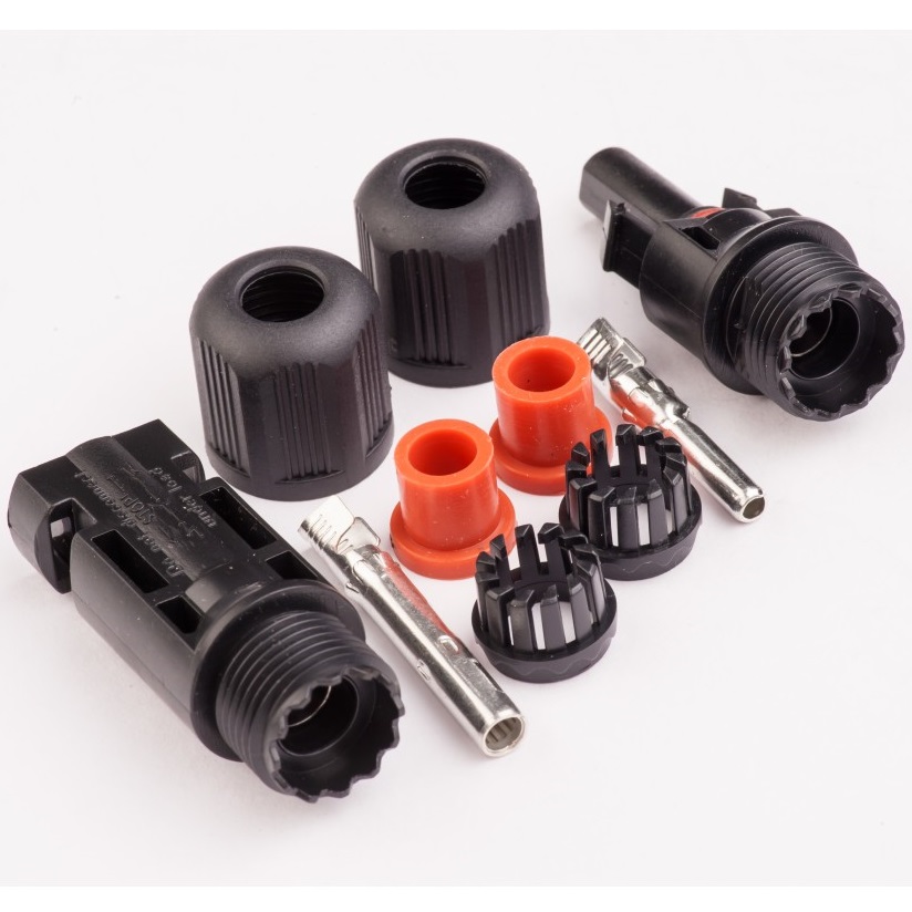 Конектор для підключення сонячних панелей до електричних кіл, з отриманням швидкороз'ємних з'єднань, з підвищеним рівнем захисту від механічних пошкоджень і різних факторів навколишнього середовища. Також можуть застосовуватися для з'єднання звичайних електричних проводів.
