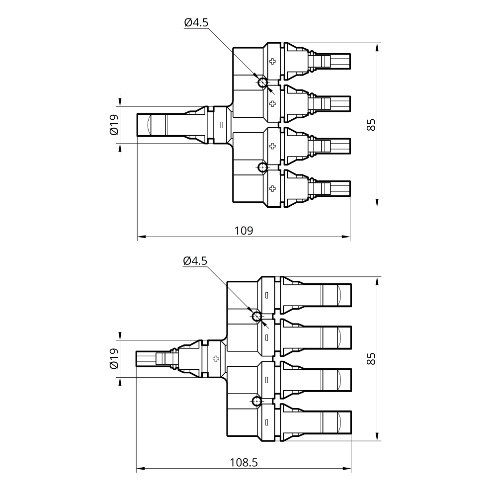 Конектор для розгалуження електричних кіл при підключенні сонячних панелей, з отриманням швидкороз'ємних з'єднань, з підвищеним рівнем захисту від механічних пошкоджень і різних факторів навколишнього середовища.