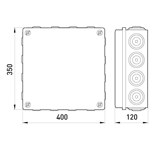 Монтажна коробка e.db.pro.400.350.120 застосовується в комбінації з гофрованими, гладкими або армованими трубами для побудови силових або слаботочних мереж. Кріплення кришки: гвинтами.