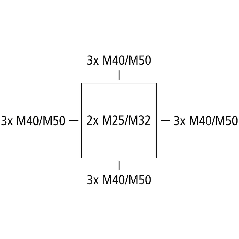Розподільна коробка, клас захисту IP54/IP65, номінальний поперечний переріз 35 мм², U i = 690 В змінного струм, вибивні отвори, M25/M32/M40/M50, (2 задні, 12 бічних), внутрішні точки кріплення, для стандартного встановлення всередині приміщень,сіра, без клем.