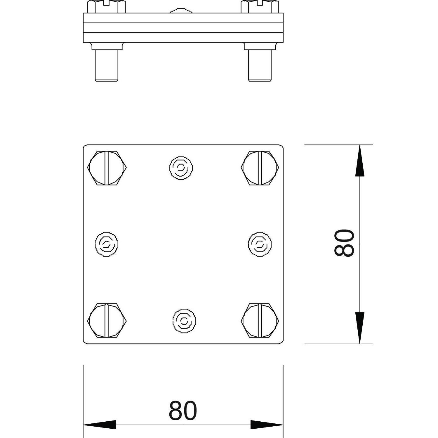 Установлюється за допомогою 4 шестигранних болтів M8 x 25 і 4 шестигранних гайок М8 (F).