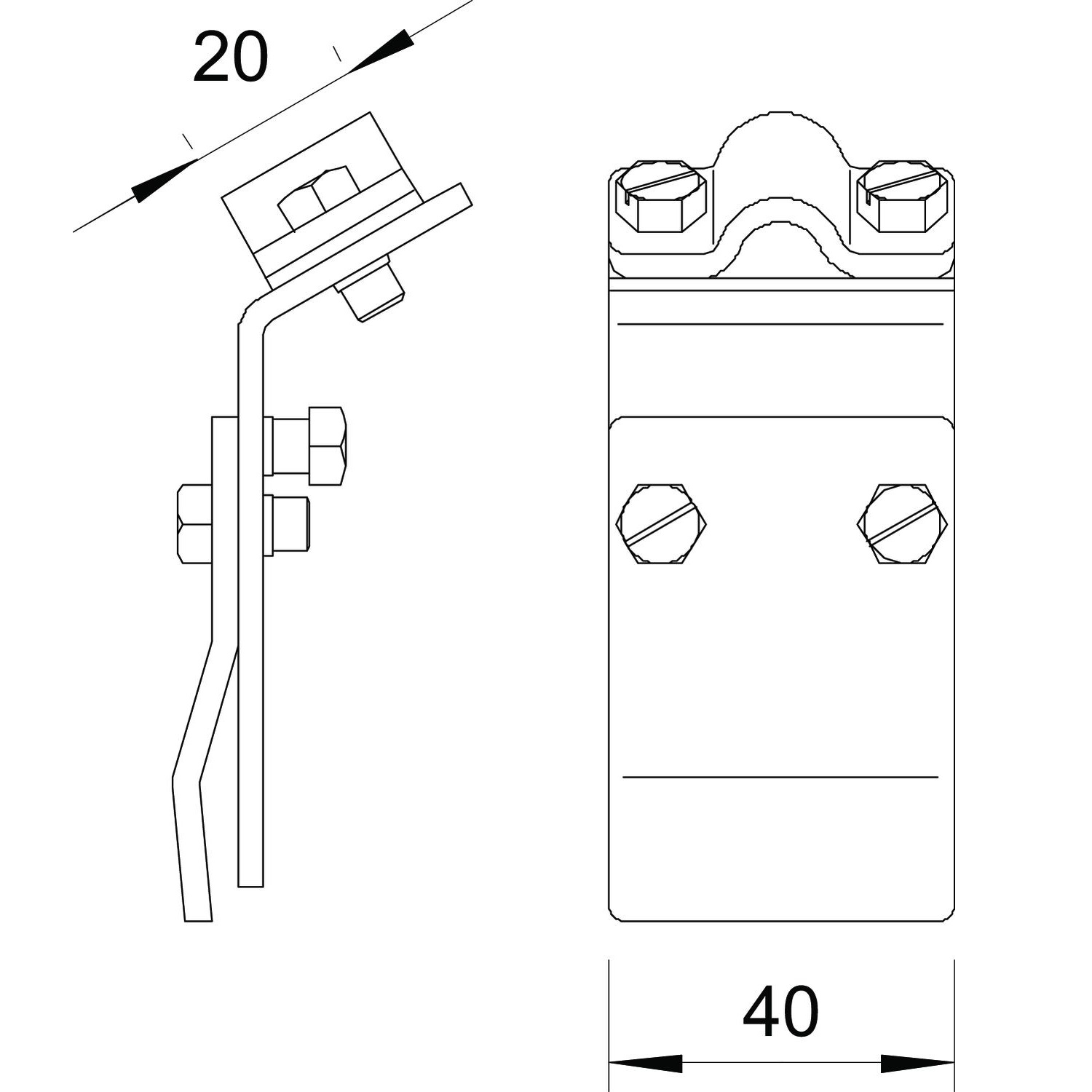 Для бортів жолобу будь-якої товщини. В комплекті 4 шестигранних болта М6 х 16