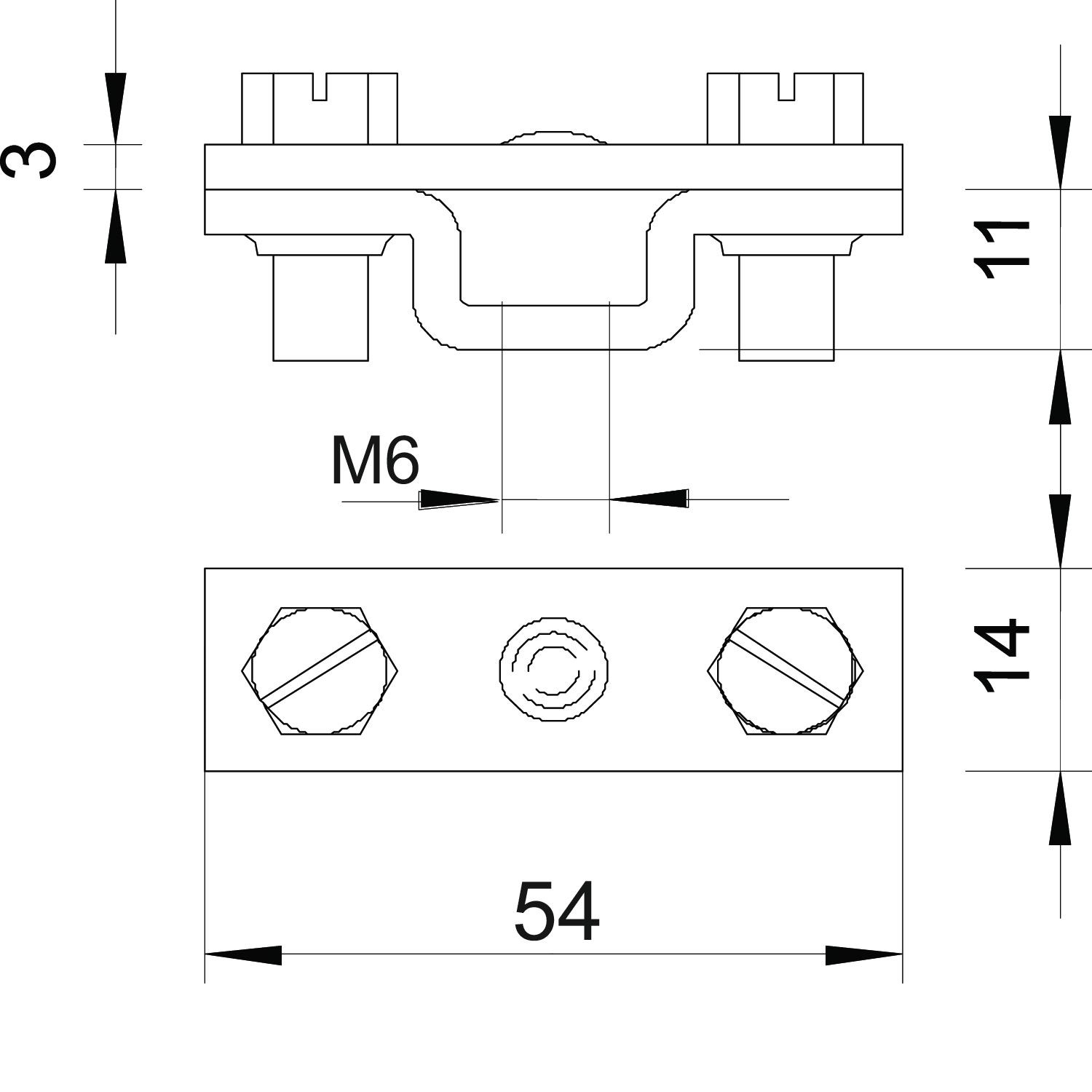 Для пласких провідників FL 30 і FL 40, має кріпильний отвір Ø 6,5 мм і 2 шестигранних болта M6 x 16 (F)
