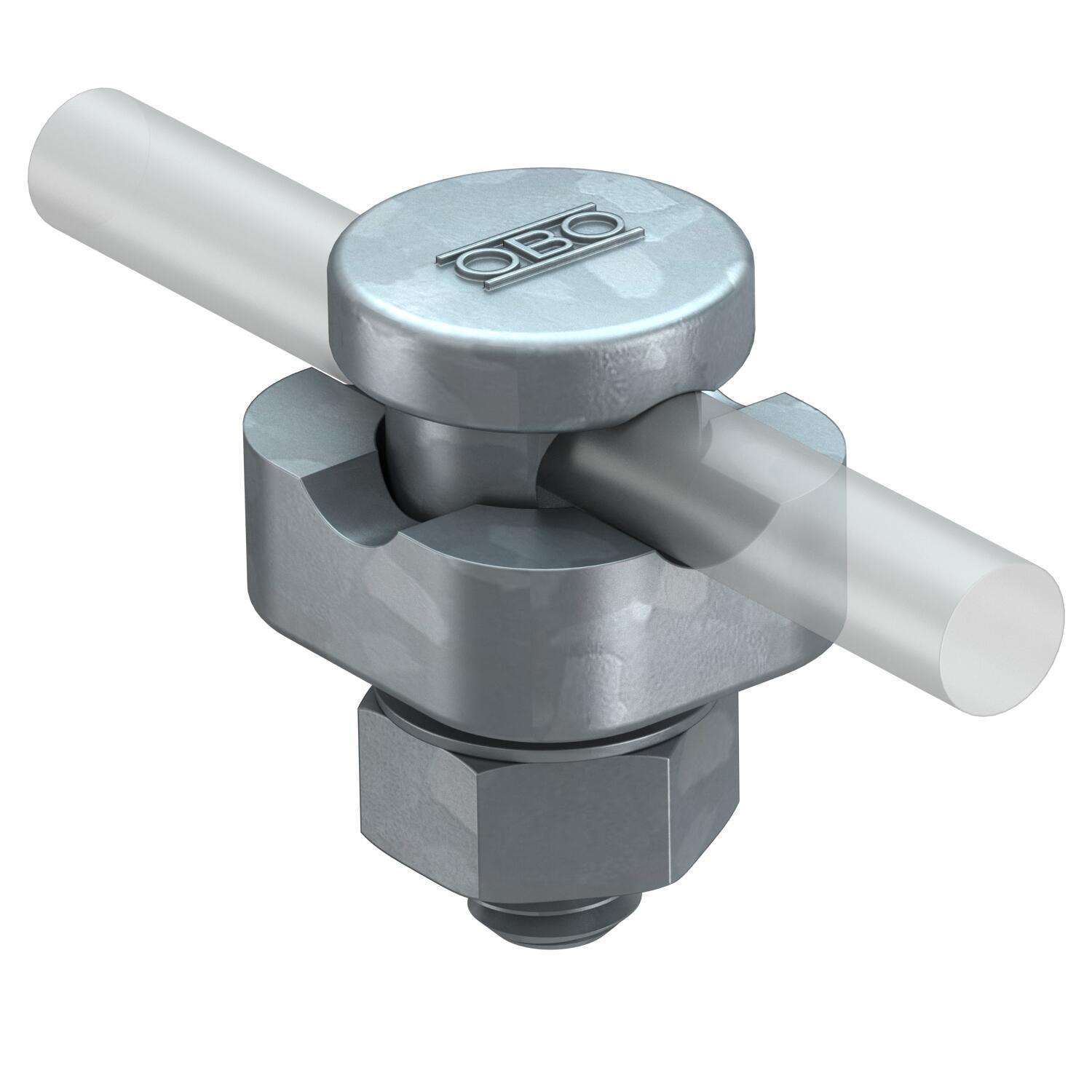 В комплекті з болтом-клемою Fix-Kontakt, гайкою та стопірною шайбою. Для круглого дроту Rd 8-10. З попередньо вмонтовамим упором із цинкового сплаву. Відповідає вимогам згідно з VDE 0185-305 (IEC 62305)