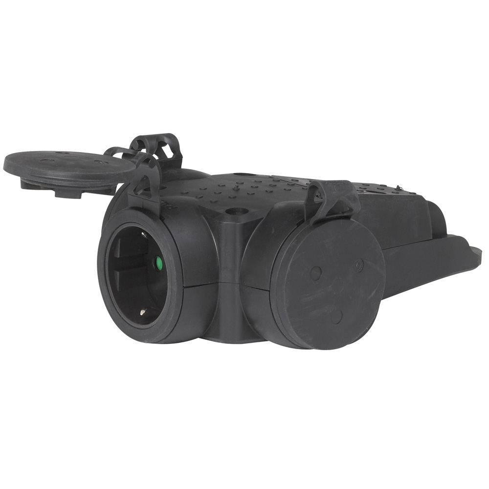 Розетковий блок гумовий з кришками 3х2К+З, 16 А, IP44, гвинтовий затиск, колір чорний