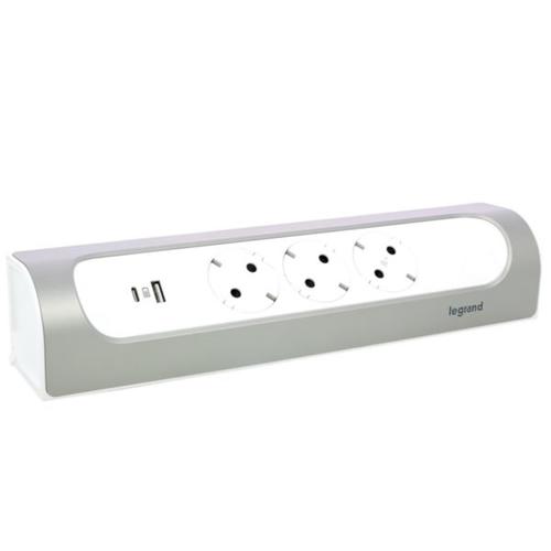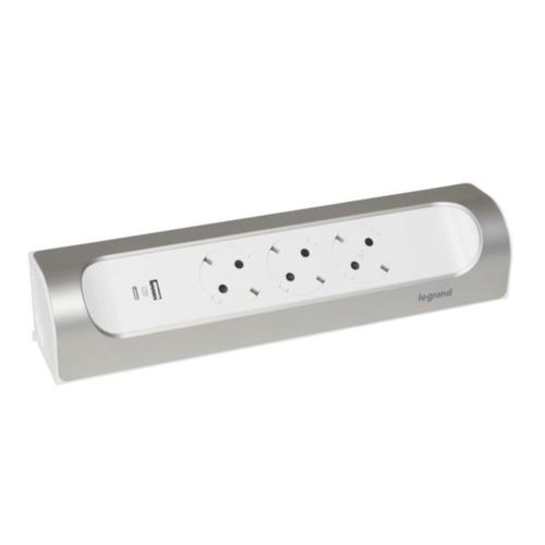 Подовжувач кутовий 3х2К+З, розетки 16 А, з USB A+C, без кабеля , алюміній, фарбований в колір білий