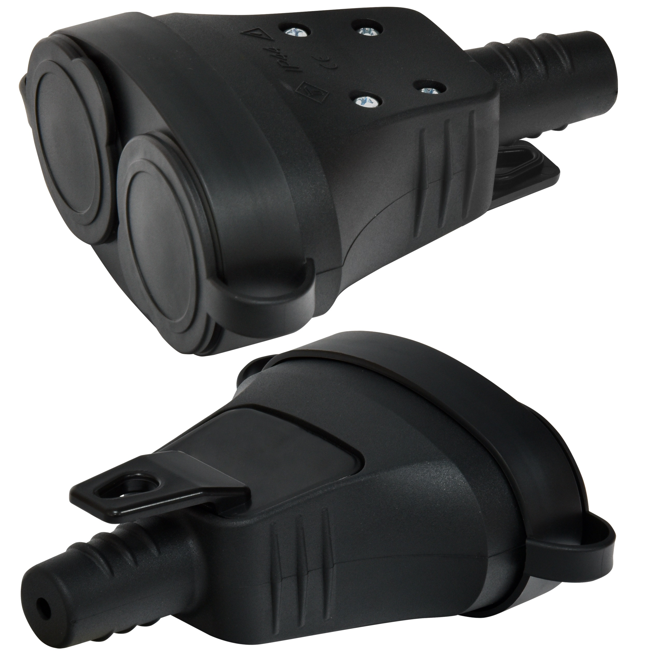 Розетка кабельна 2-на з заглуш. ERS-2C (Schuko, IP44, каучук, чорна)