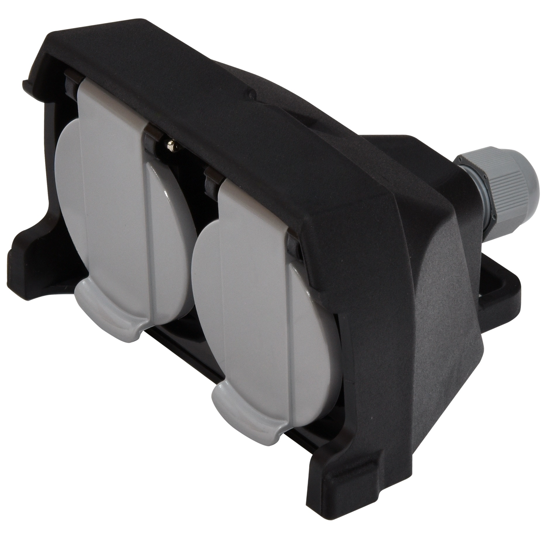 Розетка кабельна 2-на з кришк. ERS-2CM (Schuko, IP44, каучук, чорна)